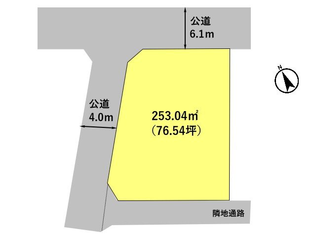 | 接道 | 北西 4m(幅員) 公道 16m(接面) 北東 5m(幅員) 公道 8m(接面) |