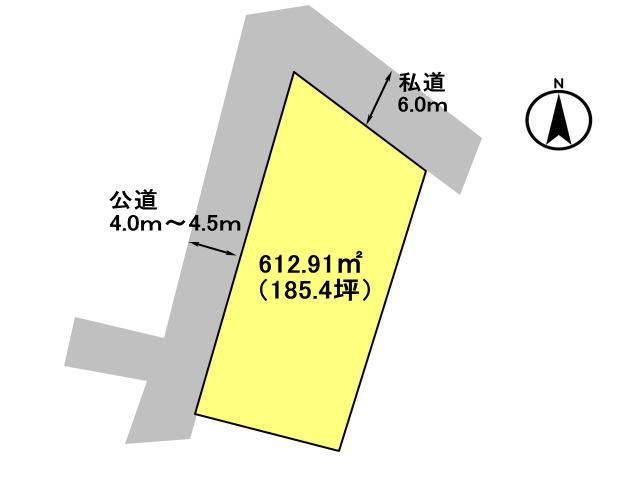 | 接道 | 北 6m(幅員) 私道 位置指定有 50m(接面) 西 4m(幅員) 公道 |