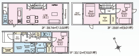 | 間取詳細 | 1F:洋6、2F:LDK18.2、3F:洋6.5、6 | 取引態様 | 仲介 |