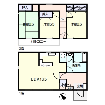 | 間取詳細 | 1F:LDK16.5、2F:和6.5、洋5.5、6.5 |