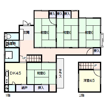 | 間取詳細 | 1階:和6、6、6、6、DK4.5、2階:洋4.5 |