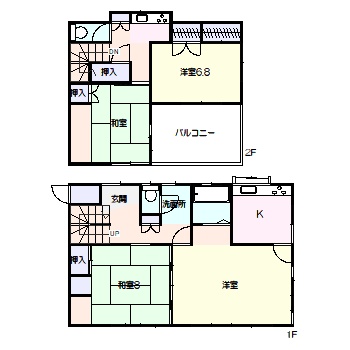 間取詳細 | 1F:和8、LDK、2F:和6、洋6.8 |