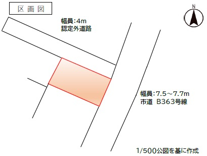 接道 | 東 7.5m(幅員) 公道 北 4m(幅員) 私道 |