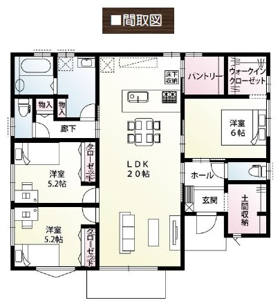 | 間取詳細 | 1F:洋5.2、5.2、6、LDK20 |