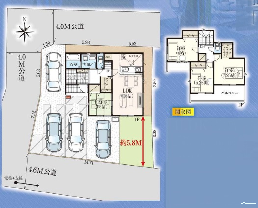 | 接道 | 南 4.6m(幅員) 公道 西 4m(幅員) 公道 北 4m(幅員) 公道 |