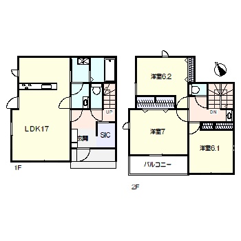 | 間取詳細 | 1F:LDK17、2F:洋6.2、6.1、7.0 |