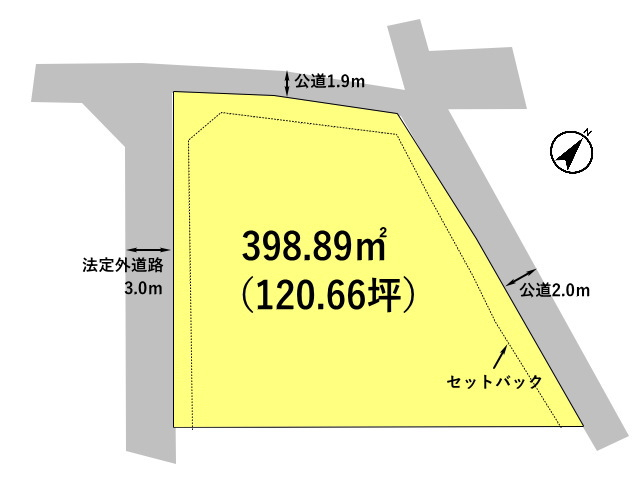 | 接道 | 北 1.9m(幅員) 公道 14m(接面) 東 2m(幅員) 公道 22m(接面) 西 3m(幅員) 公道 20m(接面) |