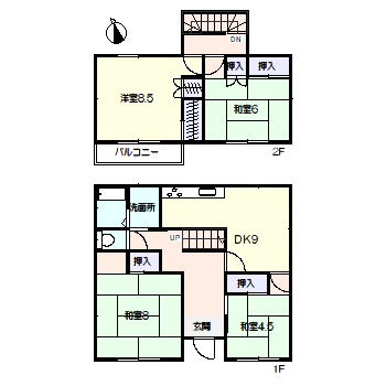 | 間取詳細 | 1F:和8、洋5、DK9、2F:洋8.5、和6.5 |