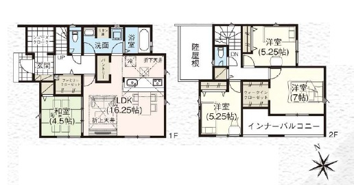 | 間取詳細 | 1F:和4.5、LDK16.25、2F::洋5.25、5.25、7 |
